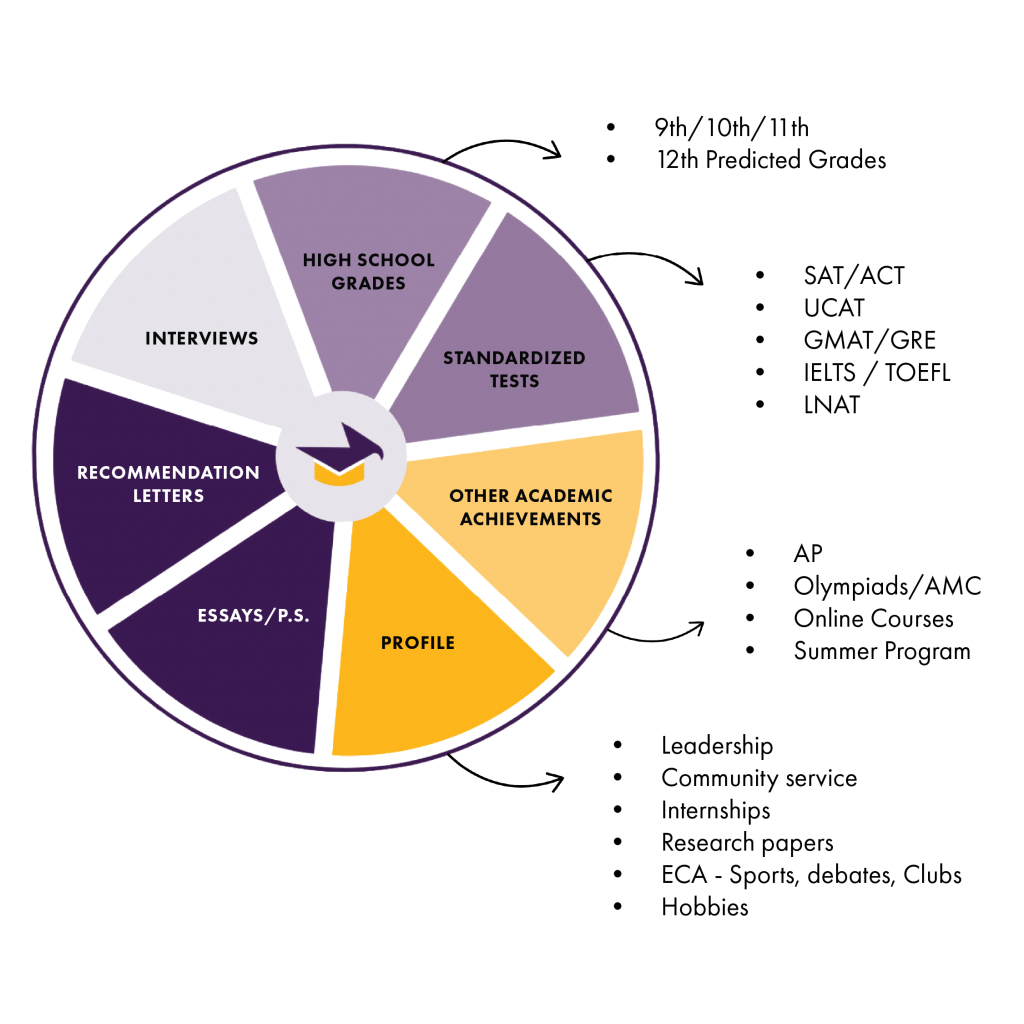 A strong university application is never just about grades. Admissions committees at top universities evaluate candidates across multiple dimensions — from academic performance and standardised test scores to extracurricular involvement, personal character, and the quality of written applications. At UGA, every student is guided to build a complete, compelling profile across all of these areas — ensuring they present the strongest possible case to their target universities.